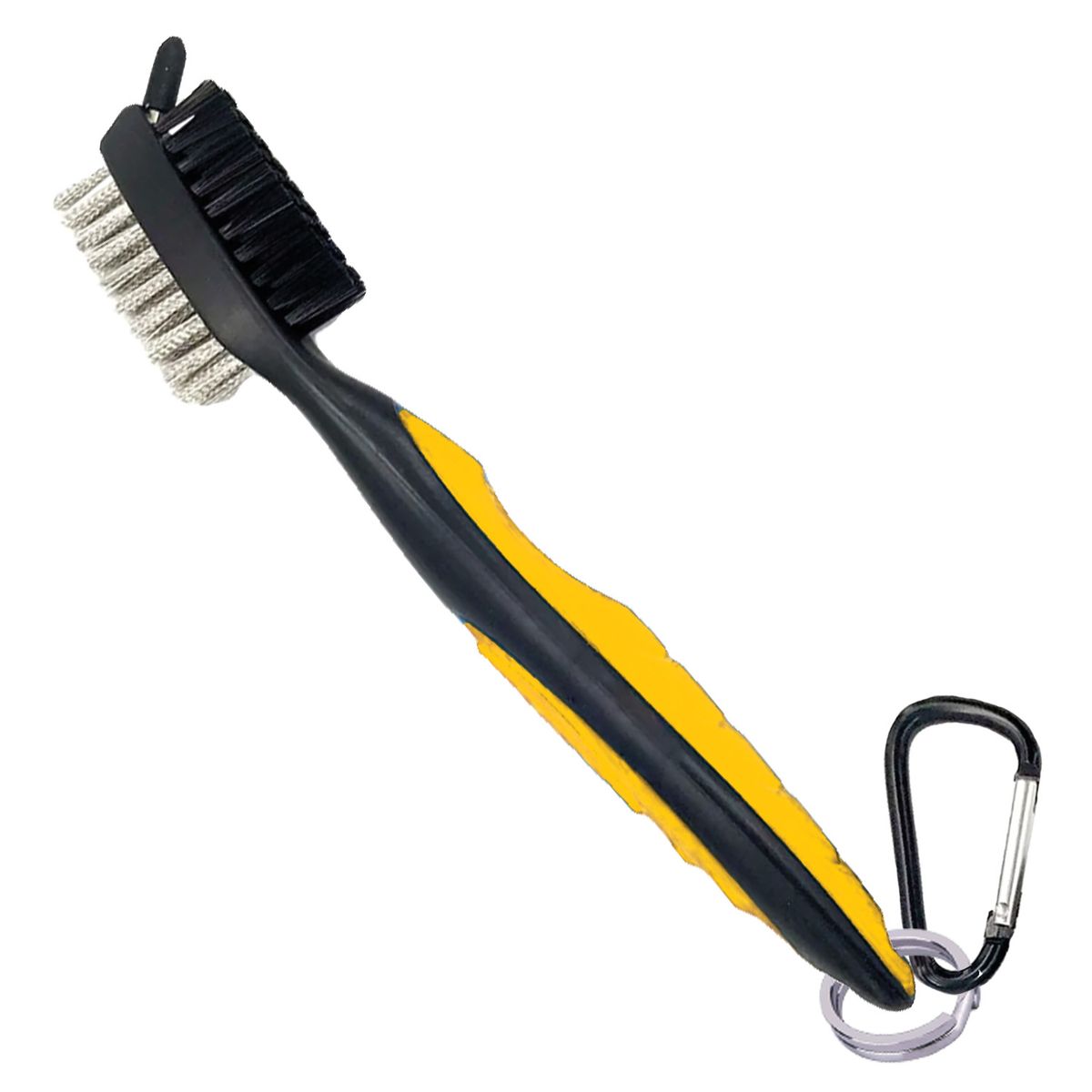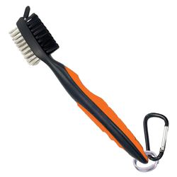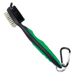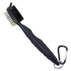 This brush contains wire and nylon bristles for quick and efficient cleaning of clubs while on the fairway, plus a sharp pick for stubborn dirt and grime in grooves. The carabiner makes it easy to attach to your golf bag for convenient access with an optional 2 ft. retractable reel.