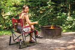 Great for camping, tailgates, backyard gatherings, and much more, this travel-friendly seat delivers a smooth rocking motion on any surface, anywhere. Supported by a sturdy, powder-coated steel tubing frame, the padded armrests and mesh backrest provide additional comfort. Its Eazy-Fold Technology makes opening and closing the chair a breeze and protects your fingers from getting pinched. And when it’s time to pack up, its integrated carry handle means no wrestling to fit it in a bag. Supports 250 lbs max. The fabric used on this chair has been tested and complies with California Prop 65 requirements. GCI Outdoor covers this product with a 3-year limited warranty (excluding imprint).